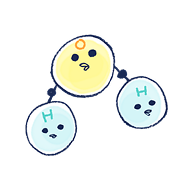 そんな水は、「水分子」と呼ばれる酸素原子(O)に2つの水素原子(H)が結合した構造をしています。